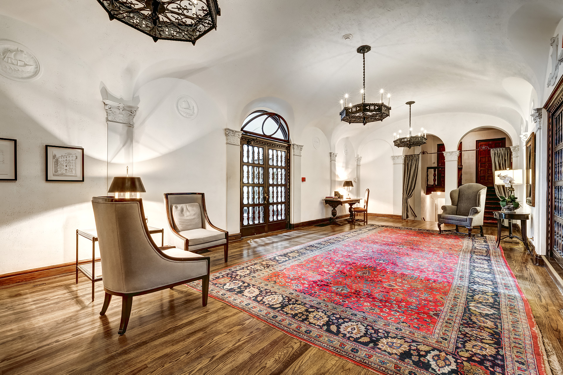 Справа- лифт. Ещё остались такие, и никто не спешит поменять этот по-настоящему старый лифт на какой-нибудь супер новый комфортабельный. Лифт прекрасно работает, ухожен, чувствуется, что всё в нём смазано и поддерживается в отличном состоянии. Тянуть решётку слева направо, чтобы войти, потом закрывать – одно удовольствие. Дом построен в 1928 году, находится в центре Монреаля. Это – “старые деньги”.