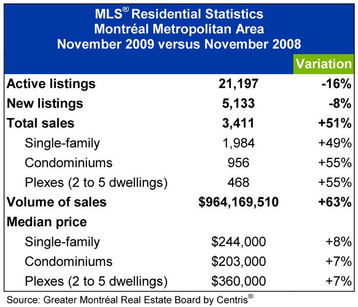 В таких случаях говорят: у меня для вас хорошие новости. Тем, у кого свой дом уже есть, эта новость очень понравится, а тех, у кого пока ещё нет своего дома, эта новость обнадёжит, но и заставит поторопиться. В общем, в ноябре этого года количество продаж скакнуло вверх аж на 51% в сравнении с ноябрём прошлого года. Правда, статистика палаты по недвижимости оговаривает, что в прошлом ноябре был кризис и продажи шли вяло (по-моему, вообще не шли). Но самое главное - цены! За год цены на недвижимость в Монреале выросли на 7-8% - это очень много. Смотрите на таблицу (кликайте), а весь сегодняшний доклад GMREB (Монреальская палата по недвижимости) - можно прочитать здесь.