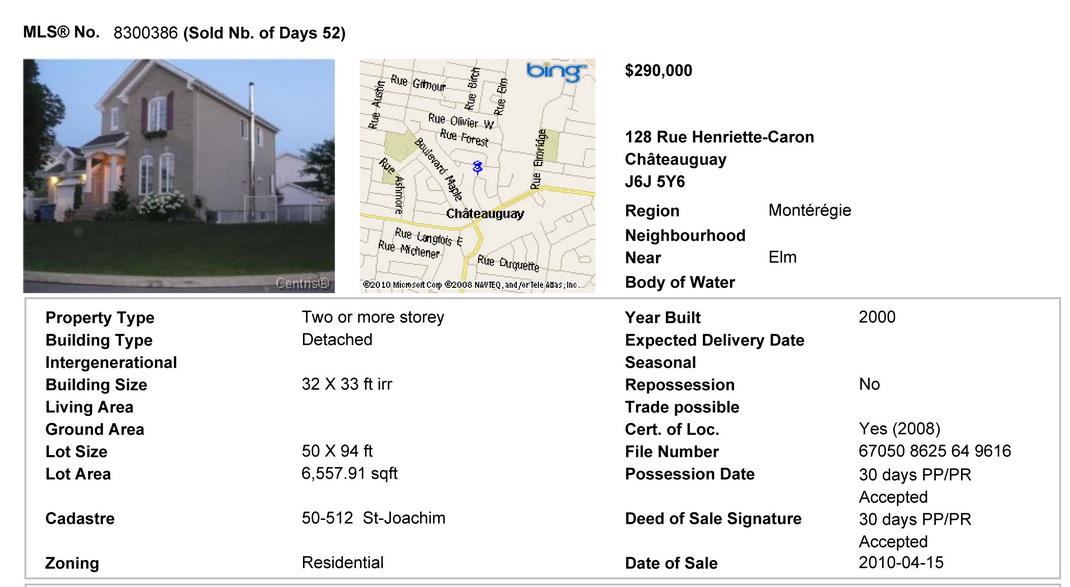8-ого февраля этого года (текст здесь) я попробовал объяснить, что такое дюпроприо, т.е. такое место, где продают сами без агента и очень часто продать не могут. Как пример попался домик, который я увидел в на одной из улиц в Châteauguay. Домик продавался через сайт дюпроприо (чтобы начать продавать через дюпроприо, продавец заплатил им минимум $600.00).