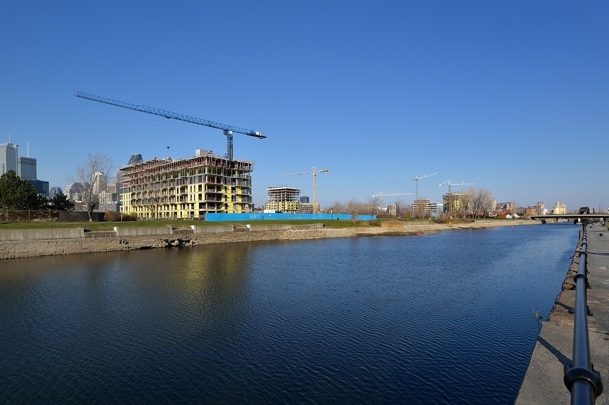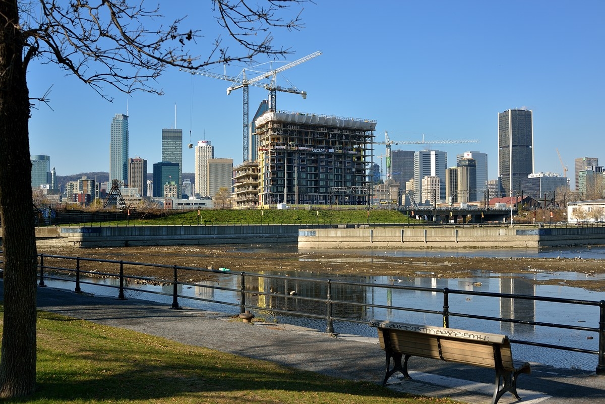 Не по дням, а по часам растёт наш Griffintown. Это только часть огромной стройки, видимой с берега канала Лашин.