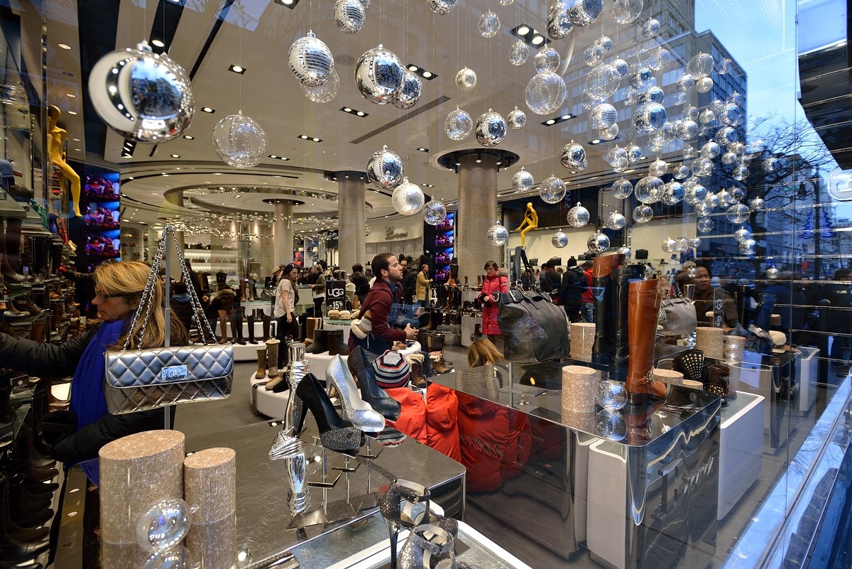 Витрина магазина Browns на главной улице Монреаля - Rue Sainte-Catherine. Предрождественские продажи идут полным ходом, в эти дни на первом месте у всех шоппинг. Лет 10 назад магазин Browns считался очень дорогим и всегда был полупустым. Сейчас в нём не протолкнуться. То ли денег стало у всех много, то ли деньги стали другими.