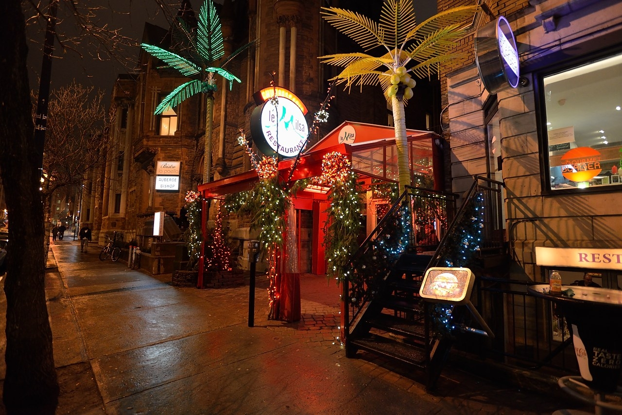 Le Milsa - бразильский ресторан в Монреале на ул. Bishop. Вкуснейшее мясо на шампурах и настоящая бразильская самба! Самая настоящая! Кормят пока не лопнешь, у всех улыбки на лицах и предрождественское настроение. Жаль, всё ещё нет в Монреале снега.