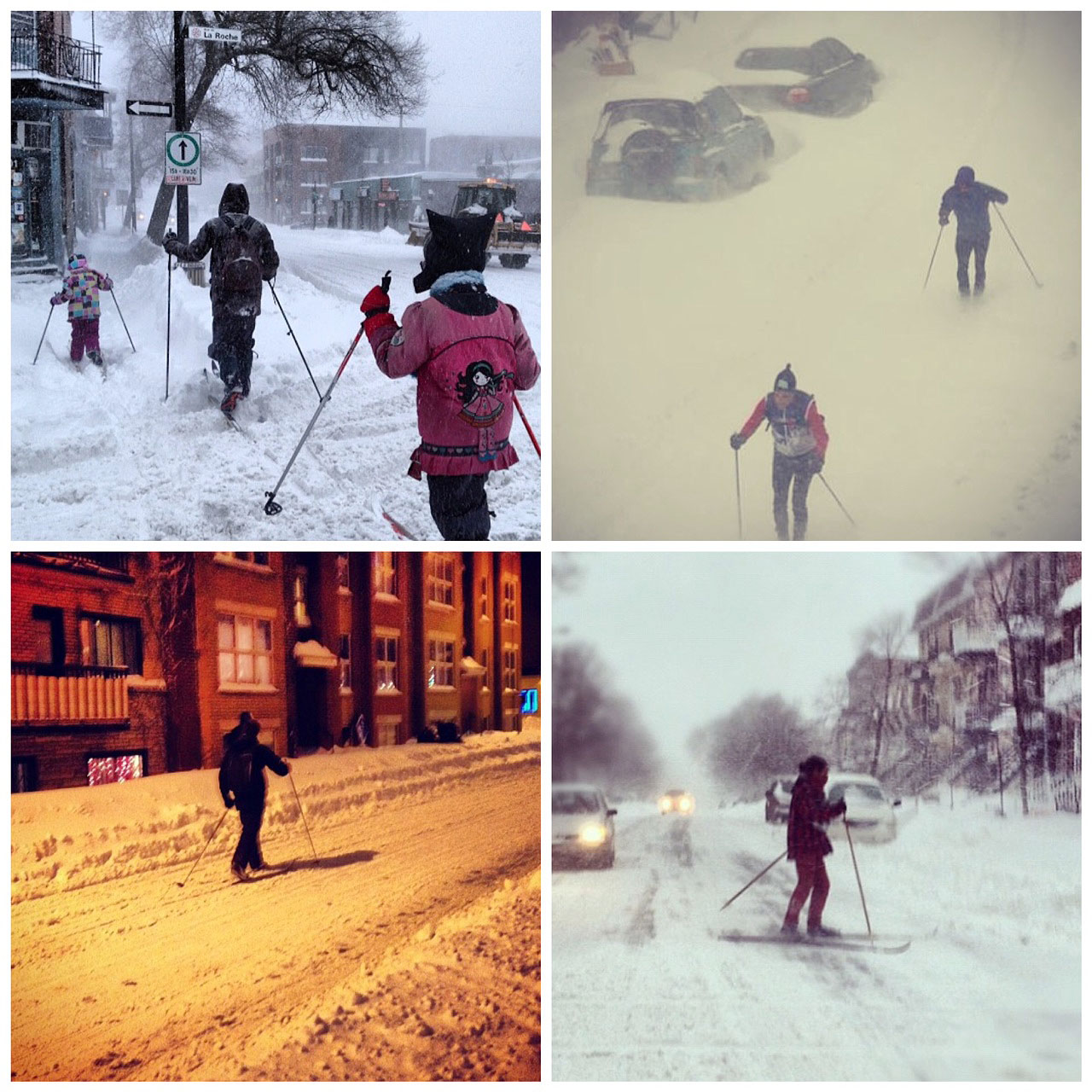 Вчера в Монреале шёл снег. До этого снега почти не было, а вчера он падал весь день. Народ отнёсся с пониманием. Вчерашние снимки, сделанные в Монреале (из Instagram). Пройти или проехать действительно было невозможно.