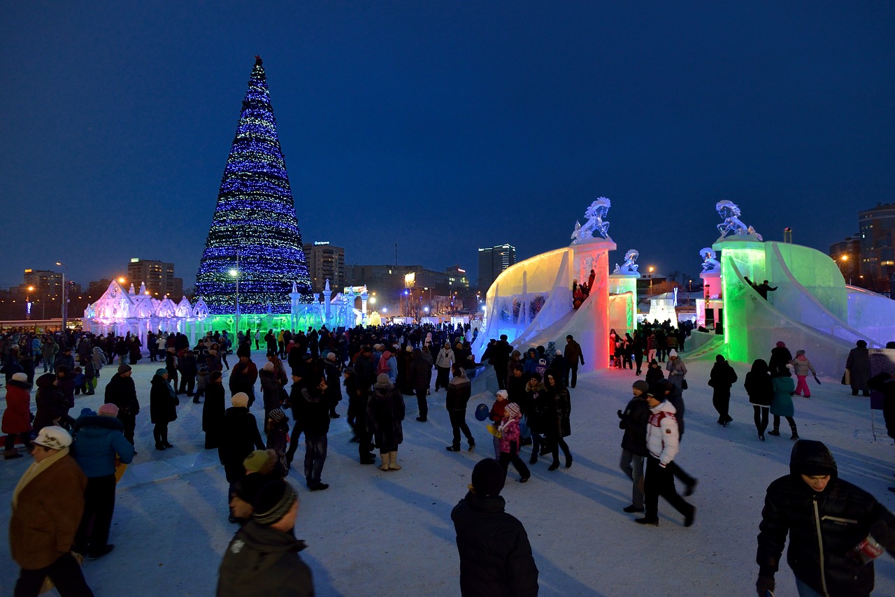 Фантастический ледяной городок на площади в самом центре Перми. Монреаль тоже зимний снежный город. Но такой красоты в Монреале нет.
