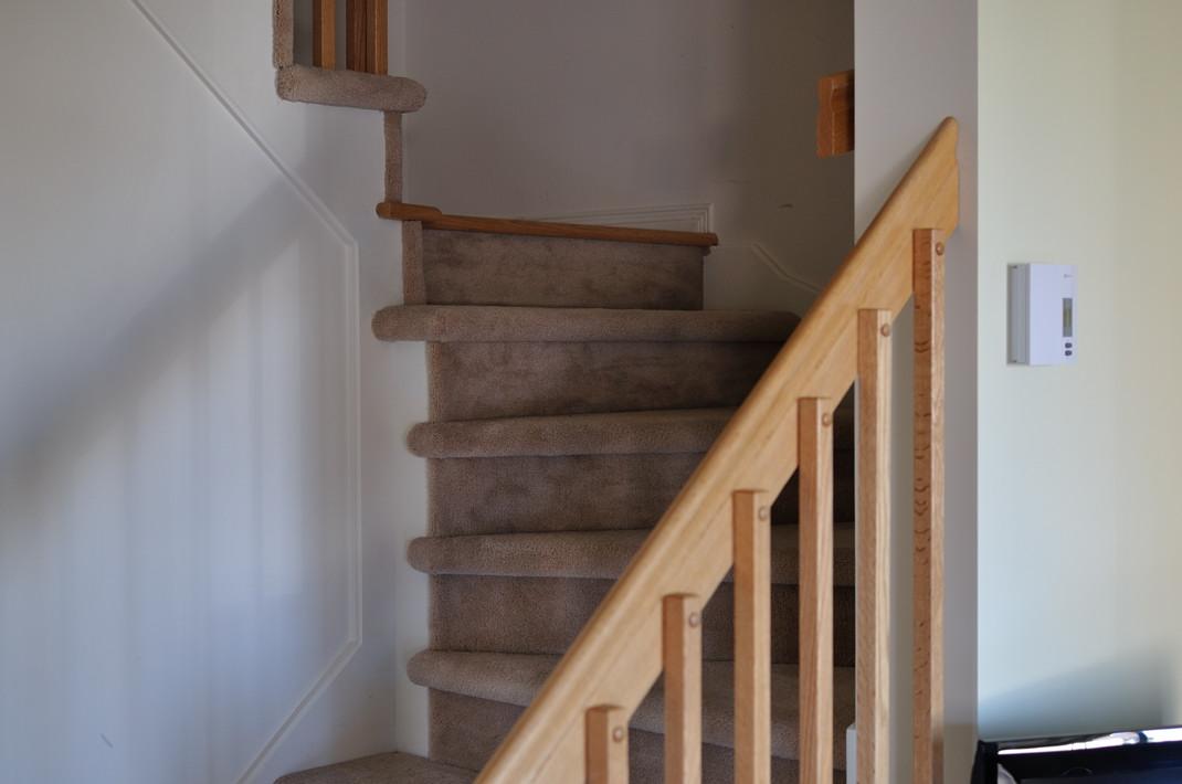 Мода на отсутствие ковровых покрытий в доме заставляет многих ставить деревянные ступеньки. Лично мне на лестнице больше нравится ковёр. Ходить по ступенькам приятнее, а если поскользнешься и поедешь вниз, то совсем не больно! Поскользнуться легко, а на деревянных – особенно. С ковром безопаснее.