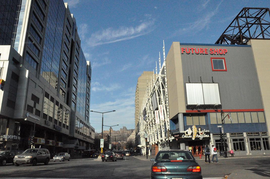В 1996 году хоккейная команда Canadiens переехала в нынешний Bell Centre, кубков Стэнли она больше не выигрывает. «Форум» стал музеем, кинотеатром и магазином электроники Future Shop. Снаружи немного странное сооружение, но, в общем, отсюда, от перекрёстка с Atwater, то, что подразумевают под «Сан-Катрин», как раз и начинается.