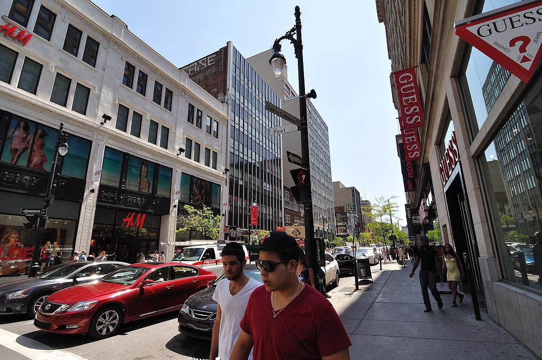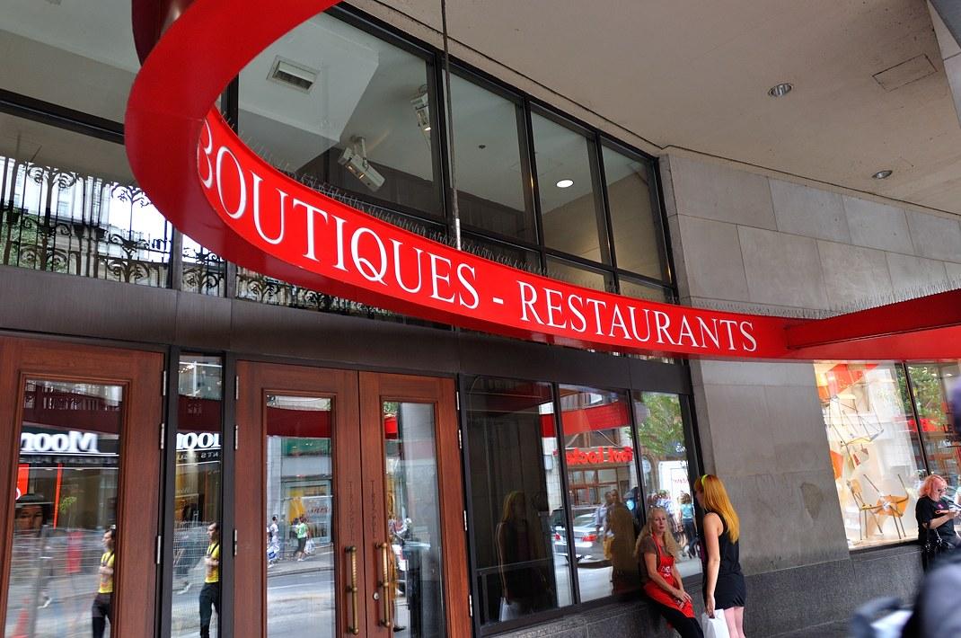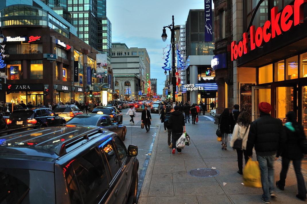 Между перекрёстков с улицей Guy и до University - Сан-Катрин – это гудящий улей бутиков и торговых центров, шоппинговый рай, причём не только вдоль улицы, но и под ней – там находится гигантский подземный город с километровыми лабиринтами пешеходных аллей и всевозможными переходами. Летом под землёй прохладно, а зимой тепло как дома.