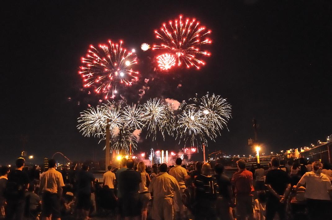 Всё живое и в движении. Суббота, вечер, где-то после 11, в период салютов, на Сан-Катрин особенно много народу