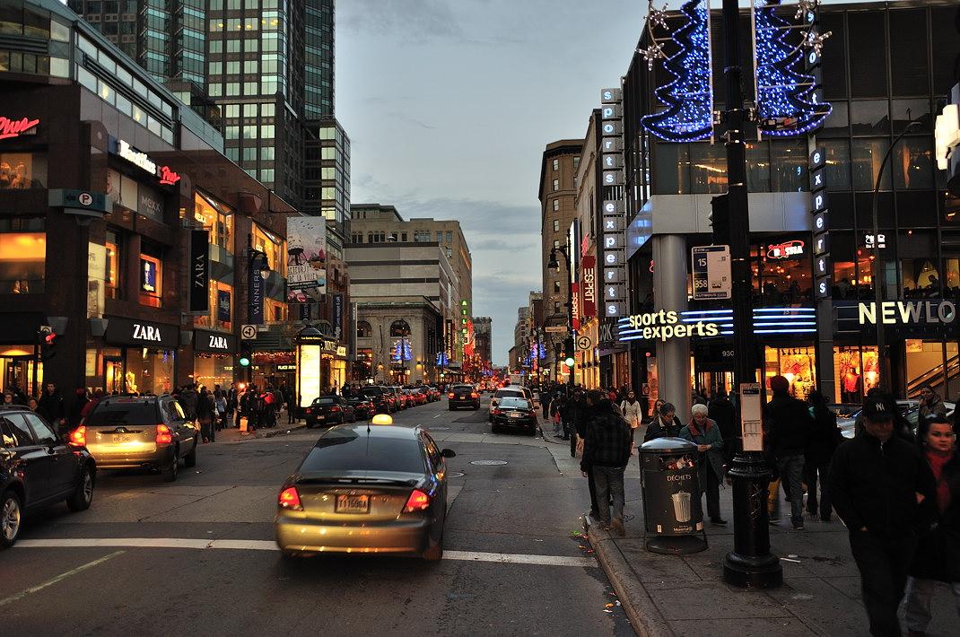 Rue Sainte-Catherine когда-то стала главной, центральной улицей Монреаля, здесь сегодня его жизнь, вся история и на ней Монреаль такой, какой он есть на самом деле. В центре деловой, студенческий, преуспевающий, гламурный, утопающий в роскоши, а чуть дальше от центра - бедный и опасный. Все самые значимые магазины и брэнды обязательно представлены на Сан-Катрин. Apple Store на Сан-Катрин.