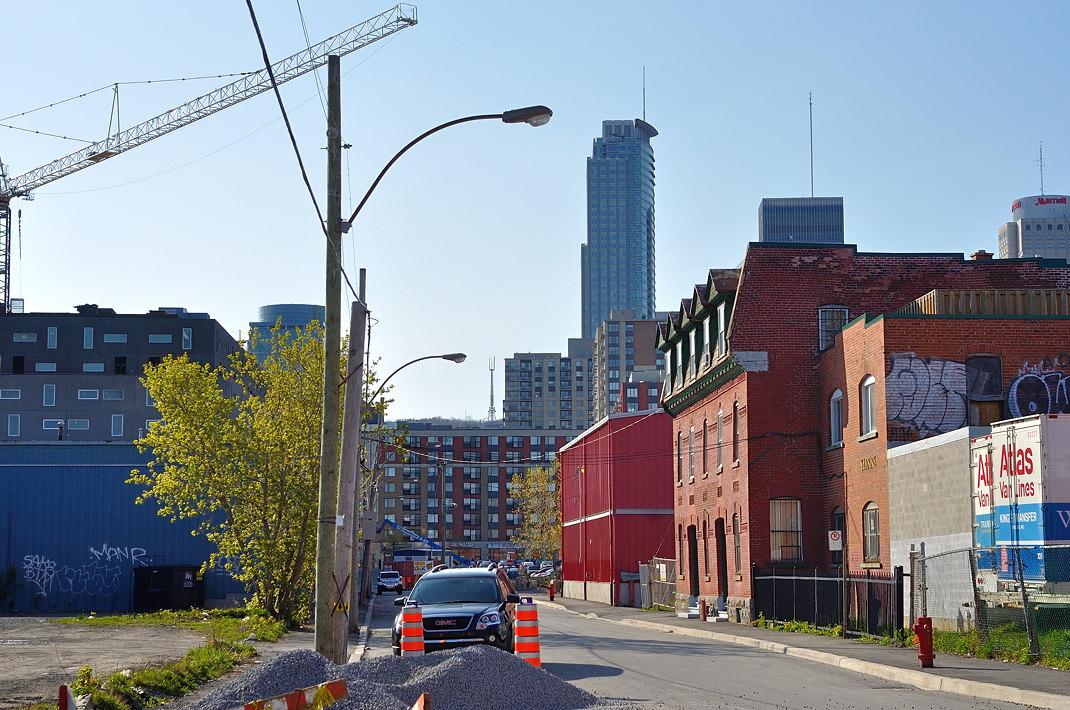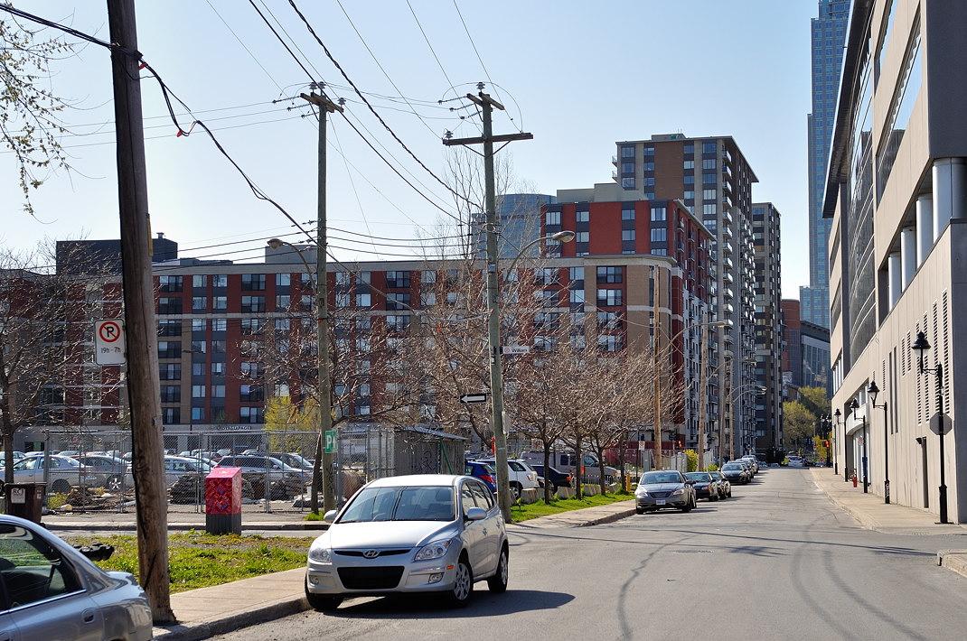 Ещё год назад на этой паркове оставляли свои машины служащие в даунтауне (оффисном центре Монреаля). Скоро на месте парковки вырастет новая высотка.