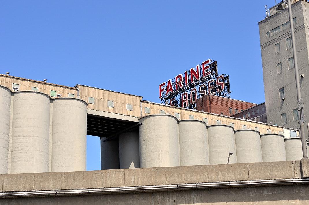 "Farine Five Rose" - мукомольное предприятие, элеватор, порт. Это название стало своеобразным символом Монреаля. Неоновая вывеска ночью видна даже из ближайших пригородов. Её пытались выключить и размонтировать. Но видимо Монреаль без Farine Five Rose уже не Монреаль. Вывеску оставили, и как только у нас начинает темнеть - её становится видно отовсюду. В общем, Farine Five Rose и Монреаль - это одно и тоже. Скорее всего под вывеской в ближайшем будущем появятся какие-нибудь сверхдорогие кондоминиумы с видом на реку Св.Лаврентия и центр города.