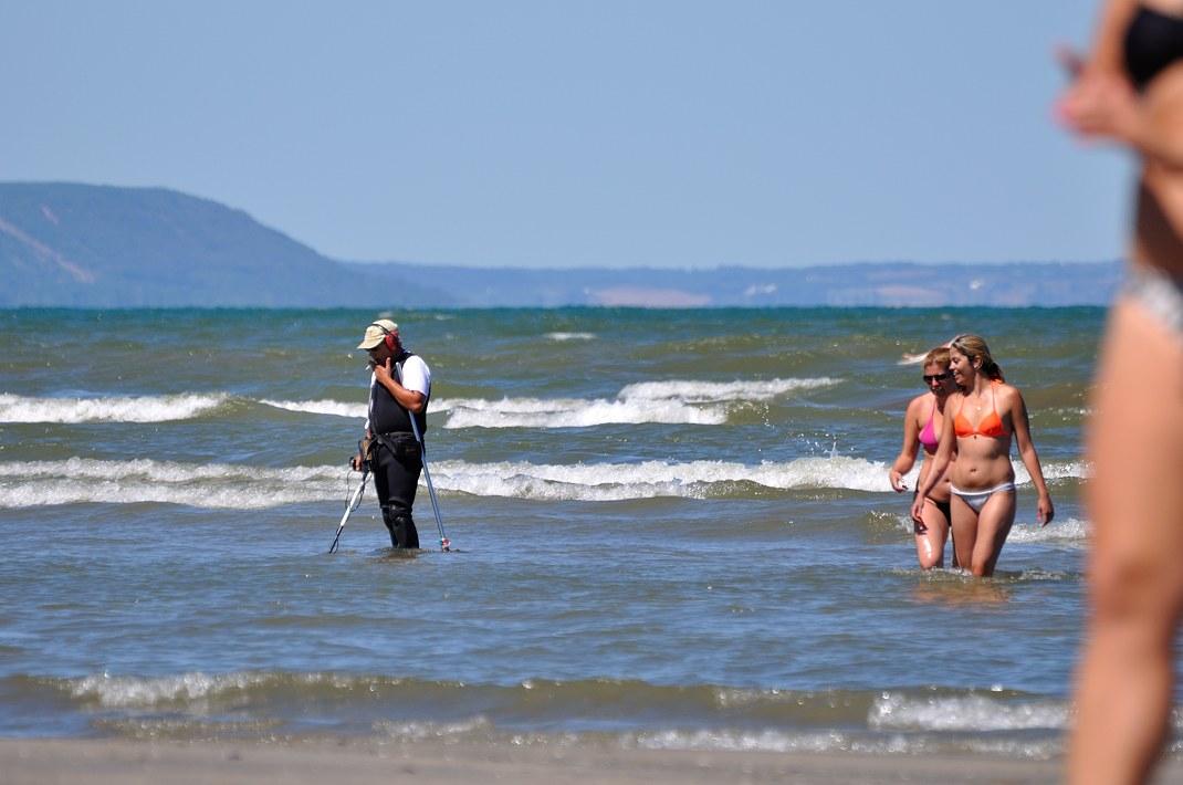 Совершенно непонятно, что можно искать с металлоискателем у самого берега.