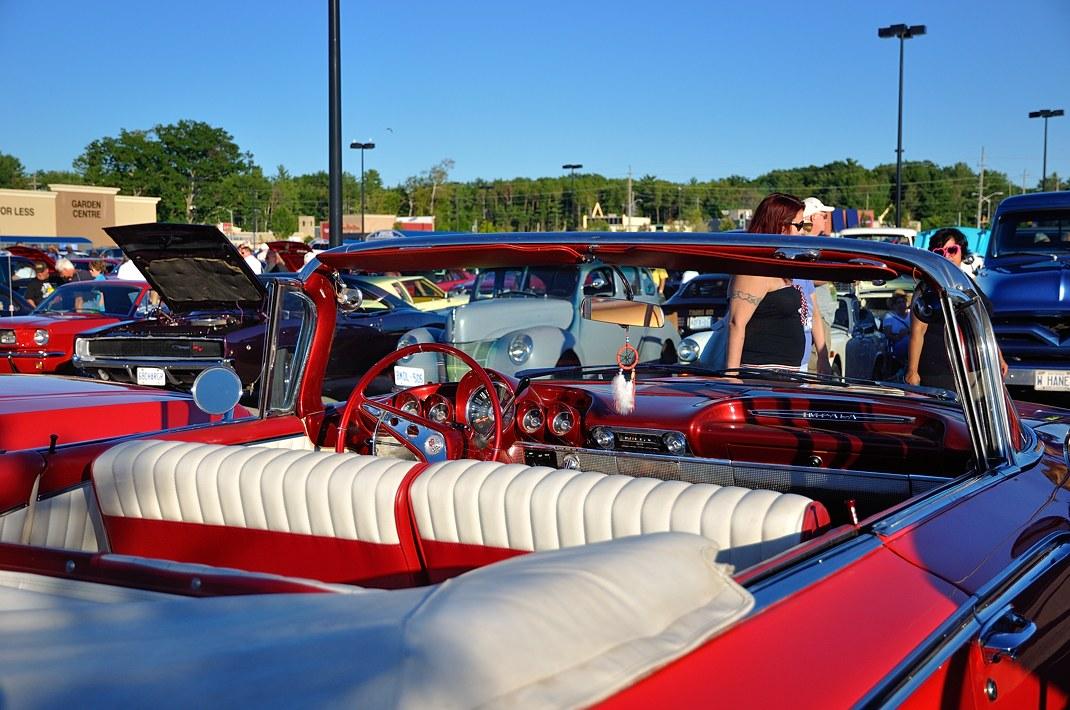 Вечером - шоу старых автомобилей. У многих подняты капоты - моторы - это особая гордость хозяев техники. Всё оригинальное, всё блестит и работает.