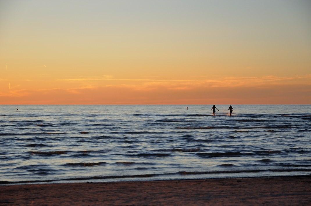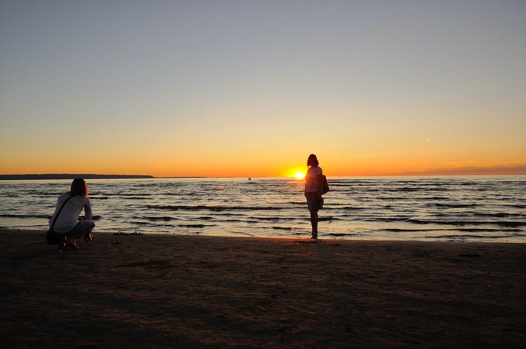 Солнце заходит, снова на пляж.
