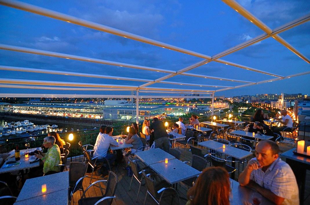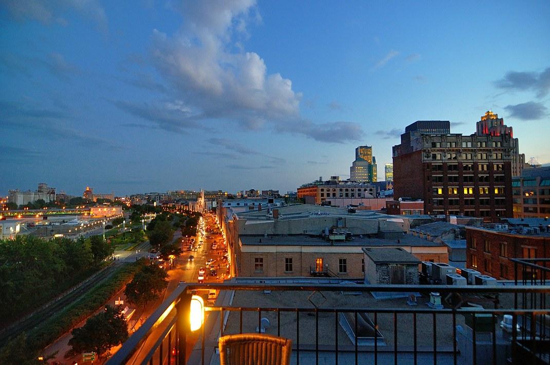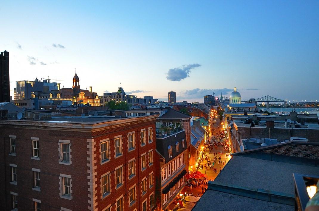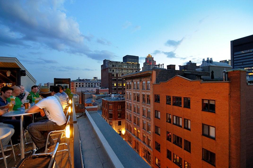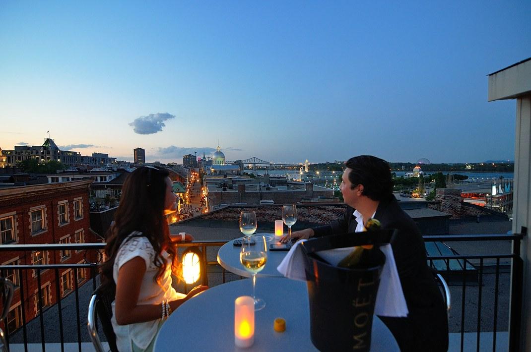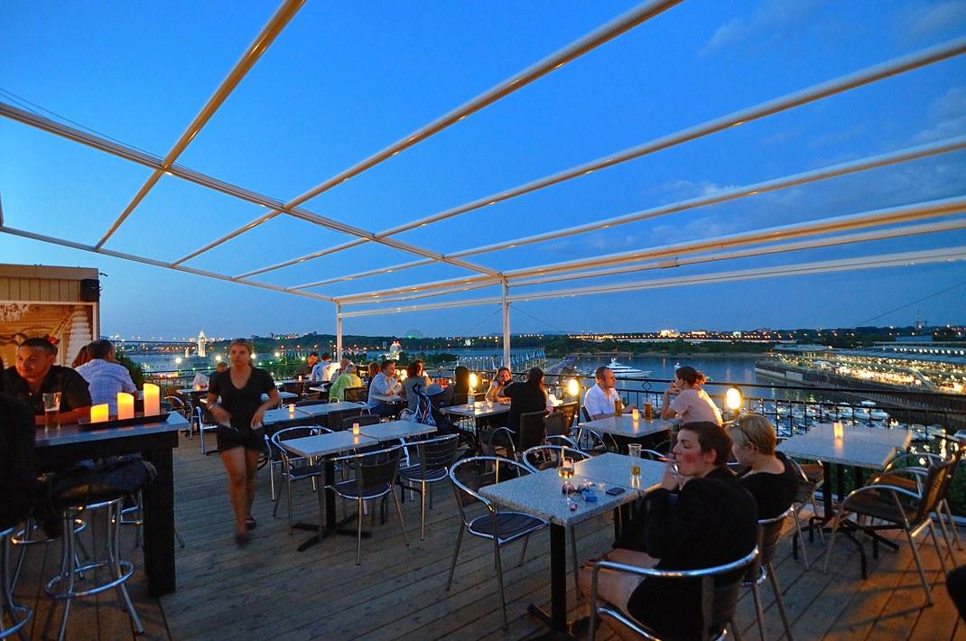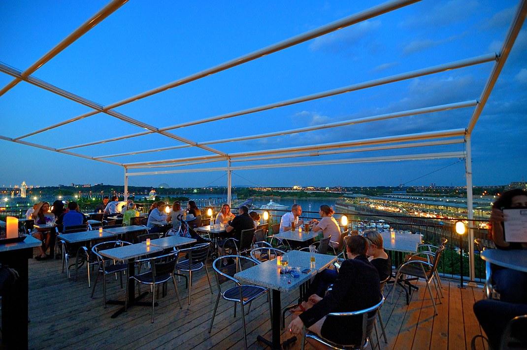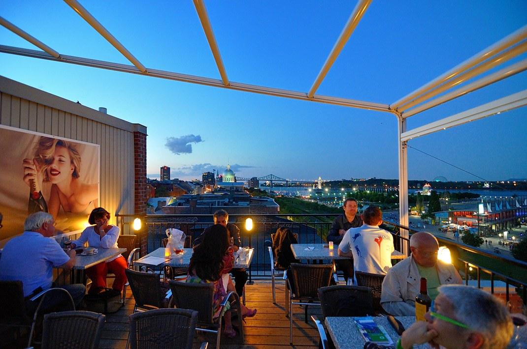 Терраса в Монреале sur L'Auberge du Vieux PortВ Старом порту Монреаля на крыше одного из зданий есть терраса, на которой имеет смысл побывать, выпить там бокальчик другой вина и полюбоваться нашим замечательным городом.