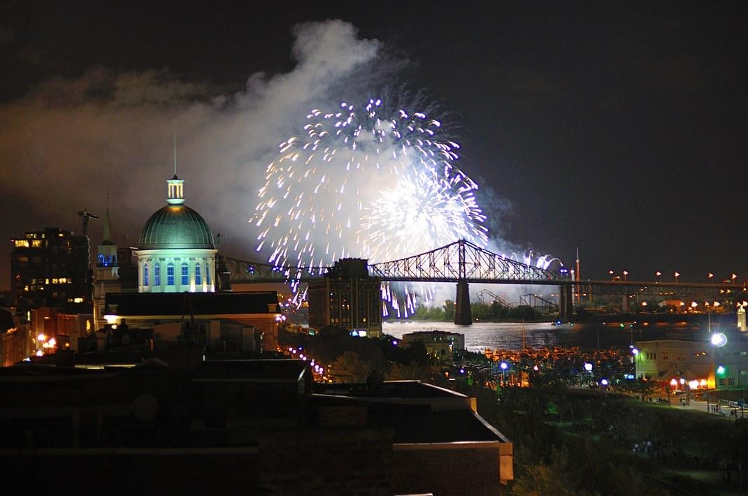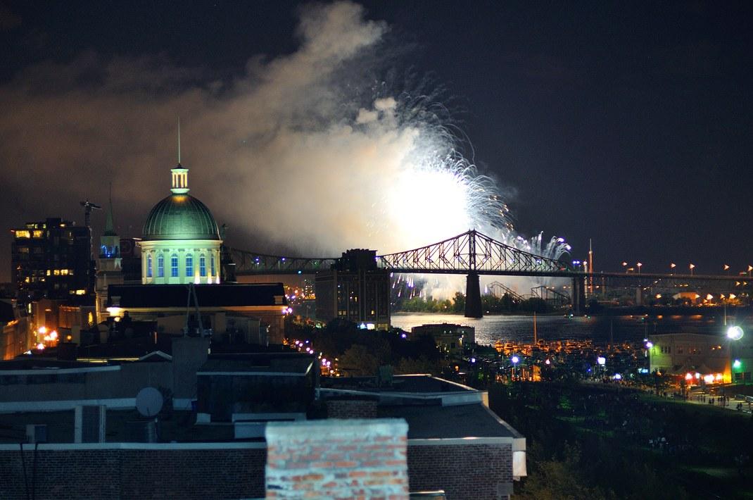 Вот-вот погаснут огни в La Ronde (колесо обозрения ещё светится), и в небе расцветут огни великолепного фейерверка.