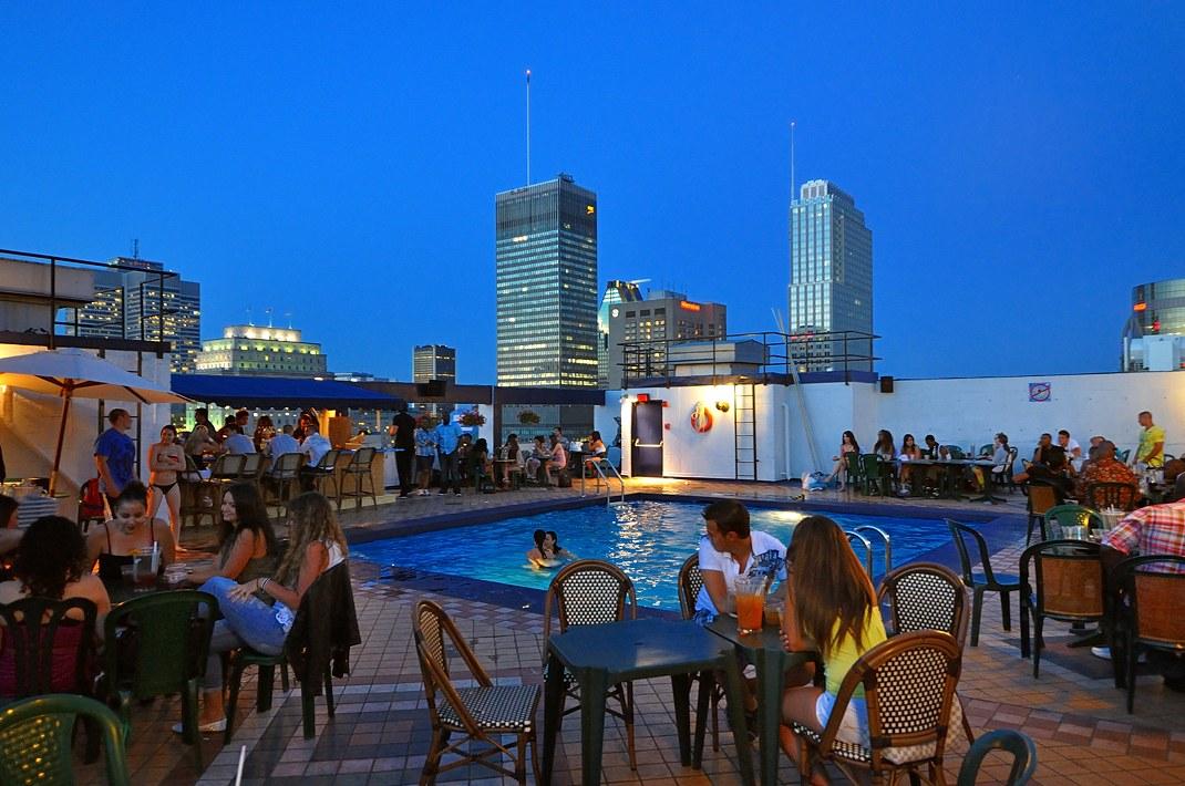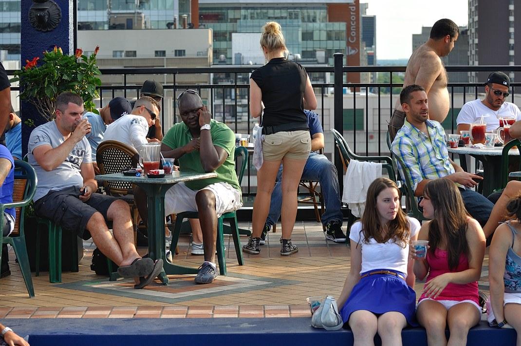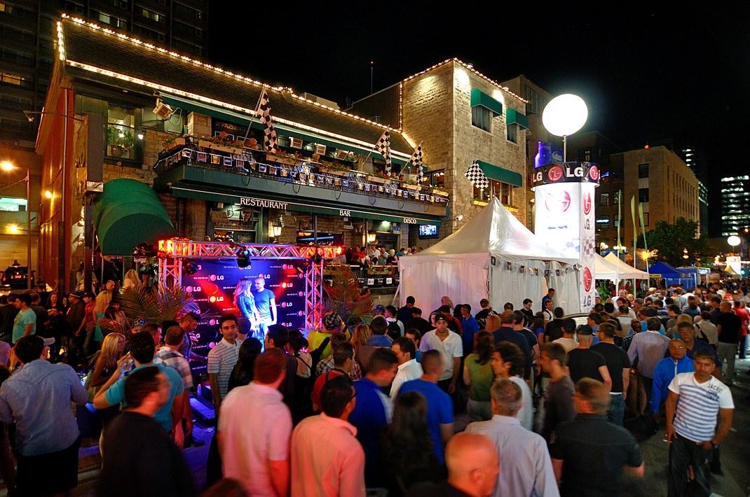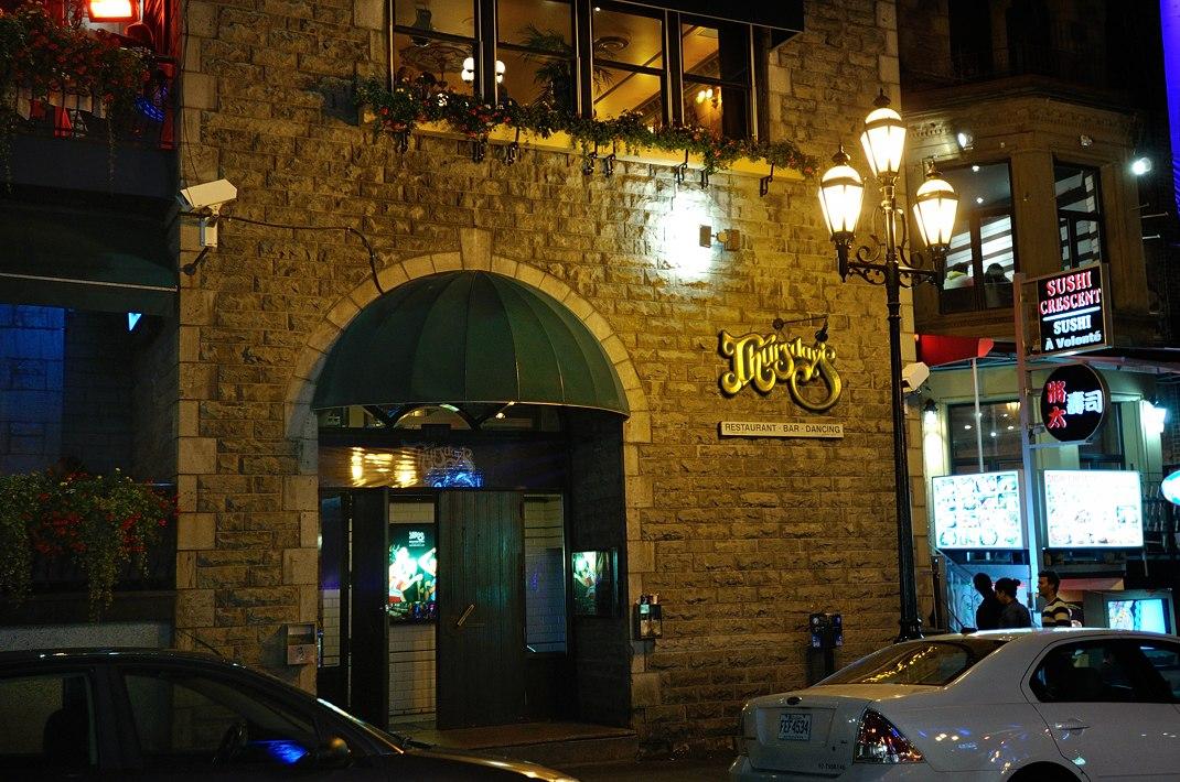 Последний вечер Thursday's Bar на улице Crescent в самом центре Монреаля. Слева за баром 20-и этажное здание Hotel De La Montagne, на крыше которого находилась La Terrasse Magnetic.