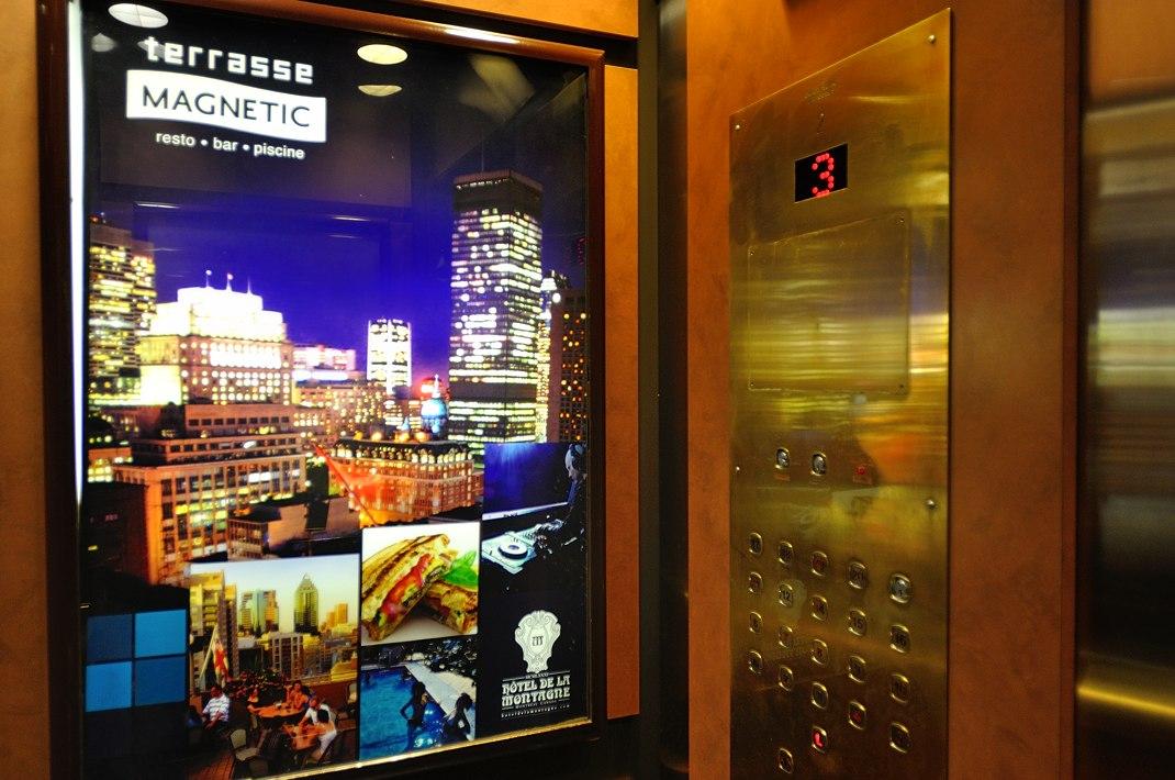 Можно пройти сквозь бар и войти в отель De La Montagne, затем в лифт на котором раньше можно было подняться на La Terrasse Magnetic. Кнопка 20-ого этажа, там где выход на террасу, уже не работает. В огромном здании пусто, на этажах никого нет, ощущение Титаника.