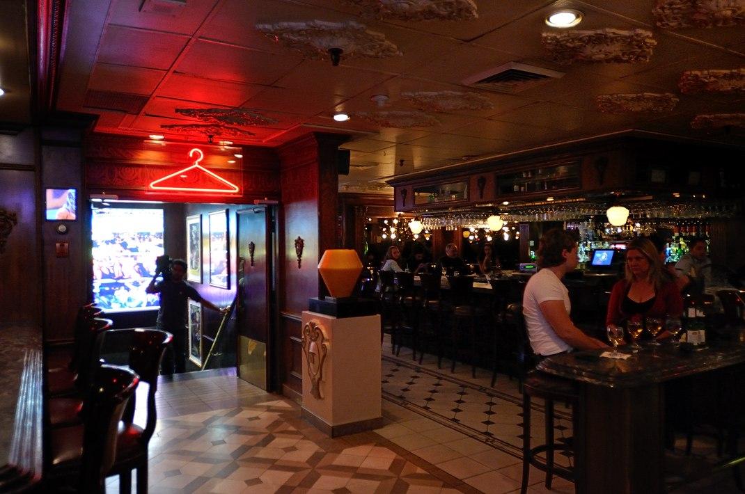 Под красной вешалкой переход в бар Thursday's, там же гардероб и дискотека.