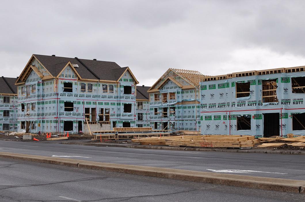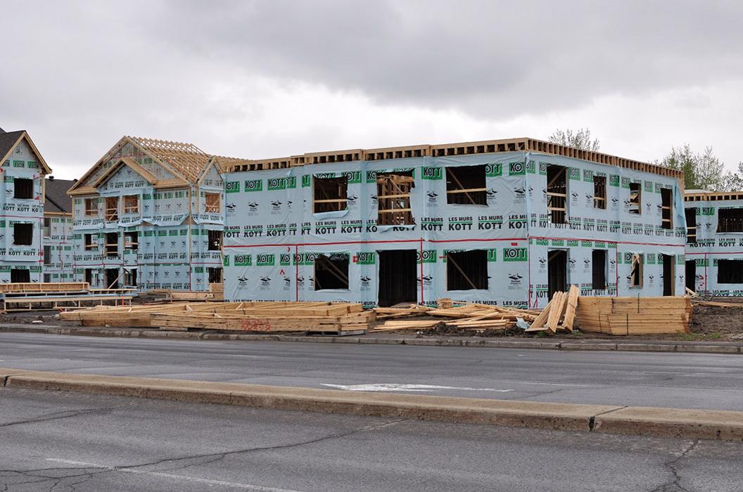 Ниже - как строились эти кондо в Lasalle. Снимки сделаны 9-ого мая 2010 на Южном берегу в St-Hubert, Qc. Это не Lasalle, конечно. Но принцип постройки тот же - каркасное строительство. Снаружи потом обделают камнем или кирпичем.