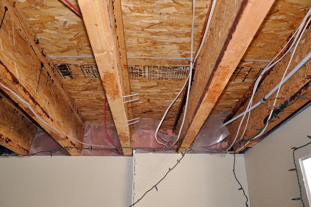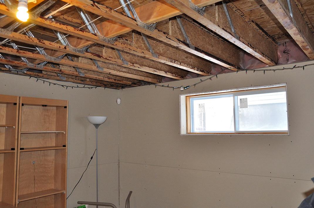 «Полузаконченный» подвал. На стенах гипсокартон, потолок открыт