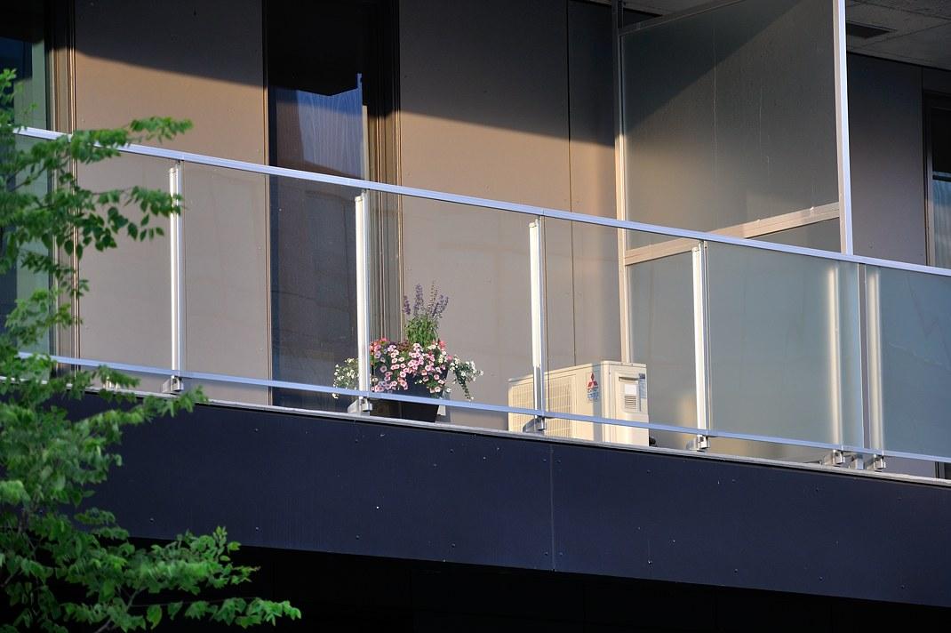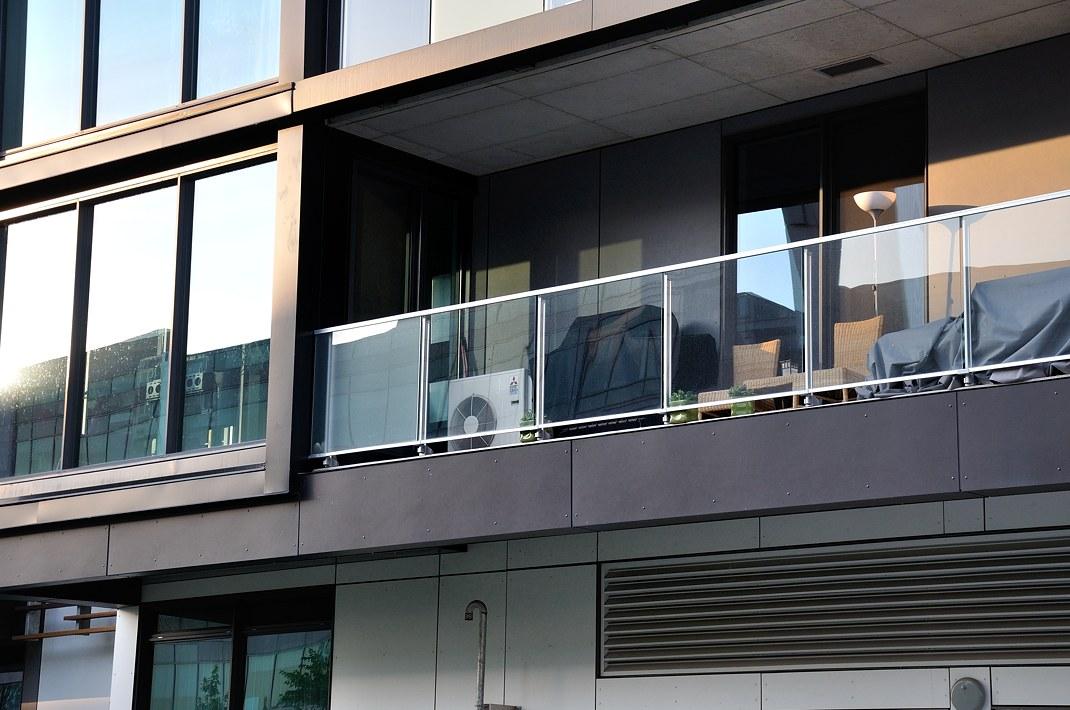 В красивом новом доме компрессоры спрятались на балконах справа за матовым стеклом
