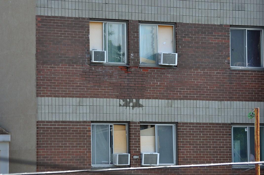 На фотографии видно, как кондиционеры разрушают стену дома. Никто об этом доме не думает, и думать не будет. Это дом социального жилья, находится он в центре Монреаля. В 80-е годы в Монреале строили много такого жилья - нужно было заполнить пустующие, брошенные земли в некоторых центральных районах, считающихся тогда неблагополучными и бесперспективными. Всё изменилось. Социальные дома в центре больше никому не нужны. Вкладывать деньги и делать ремонт никто в них не будет. Эти дома доведут до аварийного состояния (ещё лет 5-10), малоимущих жильцов - в основном беженцев-иммигрантов переселят куда подальше, а землю продадут застройщикам, которые на месте руин построят шикарные кондоминиумы. Муниципалитет вместо расходов на поддержку бедноты и связанной с ней преступностью начнёт теперь в виде налогов на недвижимость получать одни только доходы.