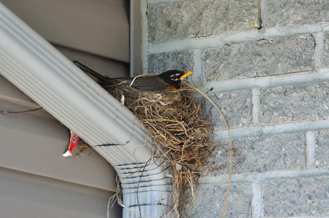 Чтобы не было осиных гнёзд, чтобы паучки и муравьи не ползли летом в дом, специальные службы обрабатывают дома снаружи. За 100-200 долларов можно обработать свой дом химзащитой ото всего живого, что есть вокруг. Наш дом – необработанный. Обрабатывать его мы не хотим. Пусть все живут рядом с нами. Птенцы вырастут, помоем стены и трубы.